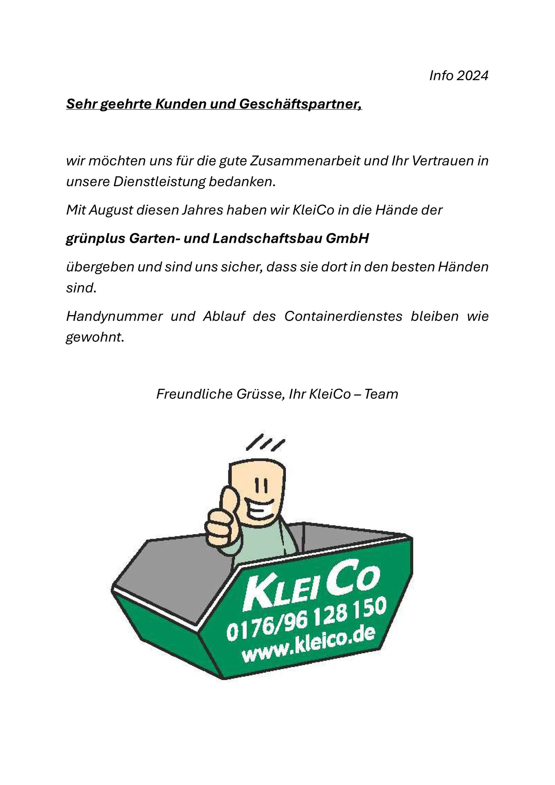 Transport und Gestellung von Containern in den Größen: 1,5 m³ und 3,5 m³ zuzgl. fachgerechter Entsorgung